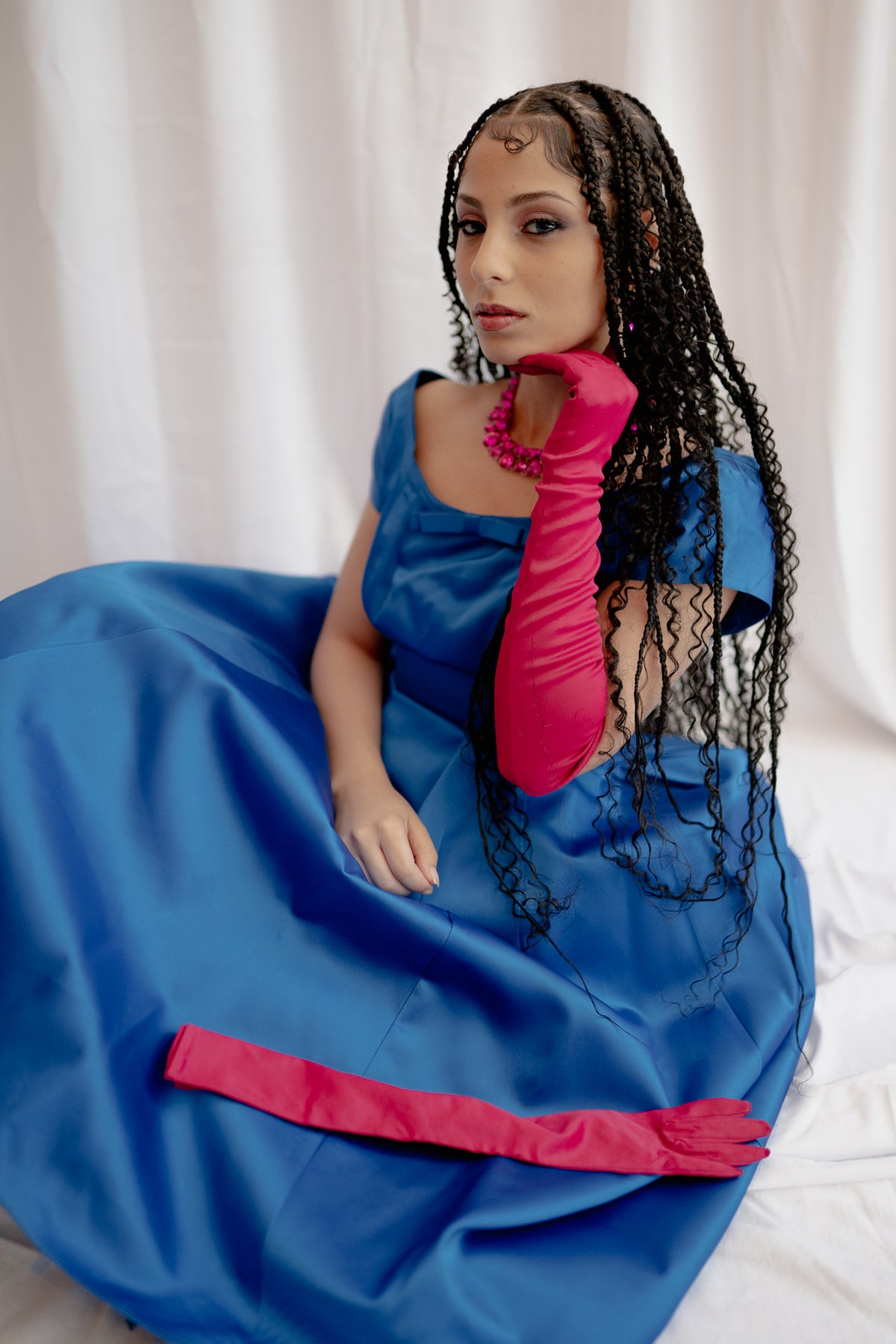 1950s Fuchsia Satin Gloves by Kay Fuchs