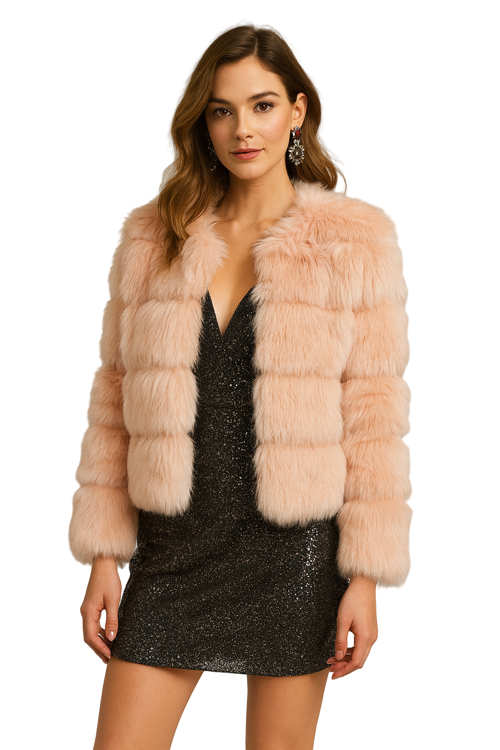 Light Pink Plush Fleece O Collar Short Coat – Size M